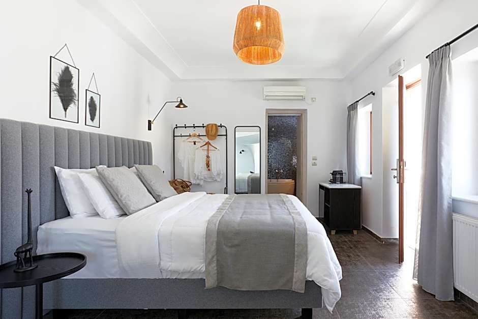 Romantically decorated suite with private pool. The spacious terrace overlooks the Aegean Sea and the caldera.